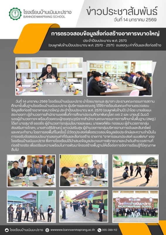 วันที่ 14 มกราคม 2569 โรงเรียนบ้านเนินมะปราง นำโดยนายกบล สุมาลา ประธานคณะกรรบการสถาน