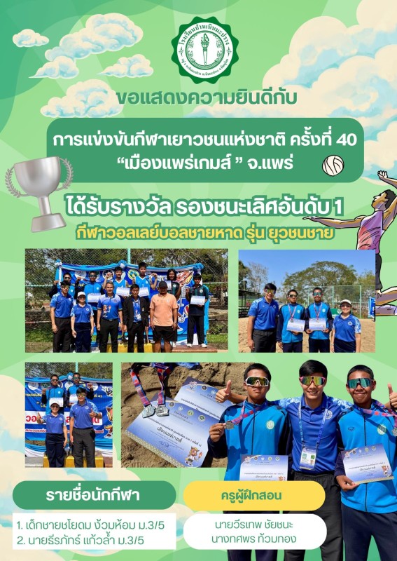 สรุปผลการแข่งขันกีฬาเยาวชนแห่งชาติครั้งที่ 40 “เมืองแพร่เกมส์ ” จ.แพร่
