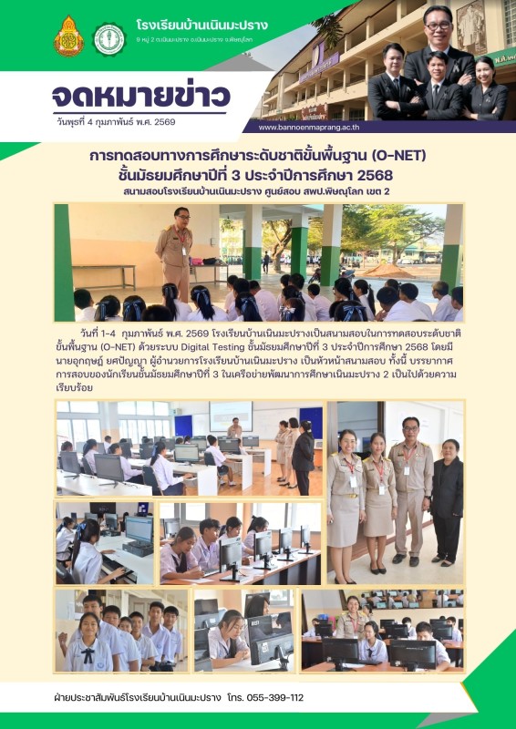 การทดสอบทางการศึกษาระดับชาติขั้นพื้นฐาน (O-NET) ด้วยระบบ Digital Testing ชั้นมัธยมศึกษาปีที่ 3 ประจำปีการศึกษา 2568 สนามสอบโรงเรียนบ้านเนินมะปราง ศูนย์สอบ สพป.พิษณุโลก เขต 2